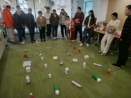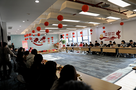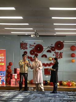 復城辦公區同樣熱鬧非凡;顒蝇F場,彩帶、氣球、燈籠等裝飾品將空間裝點得溫馨而喜慶。隨著歡快的音樂,活動正式開始!罢胸斶M寶”箭指好運,“心有靈犀”考驗搭檔之間的默契,“妙語連珠”技巧與智慧并用,“珠聯璧合”展現平衡技巧,“幸運圓環”收獲滿滿驚喜。大家在歡樂、溫馨的氛圍中迎接新年的到來,共同創造美好的回憶。